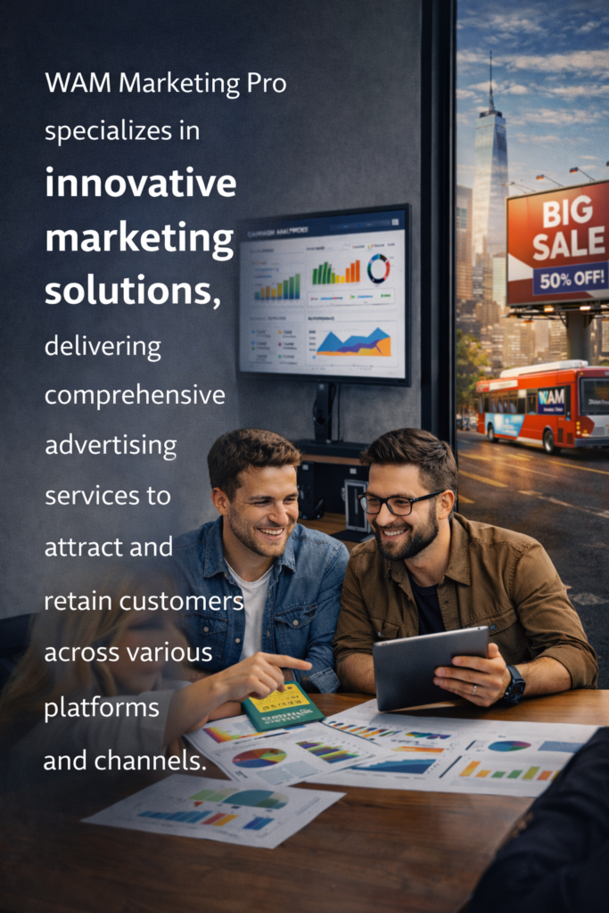 WAM Marketing Pro specializes in innovative marketing solutions, delivering comprehensive advertising services to attract and retain customers across various platforms and channels.